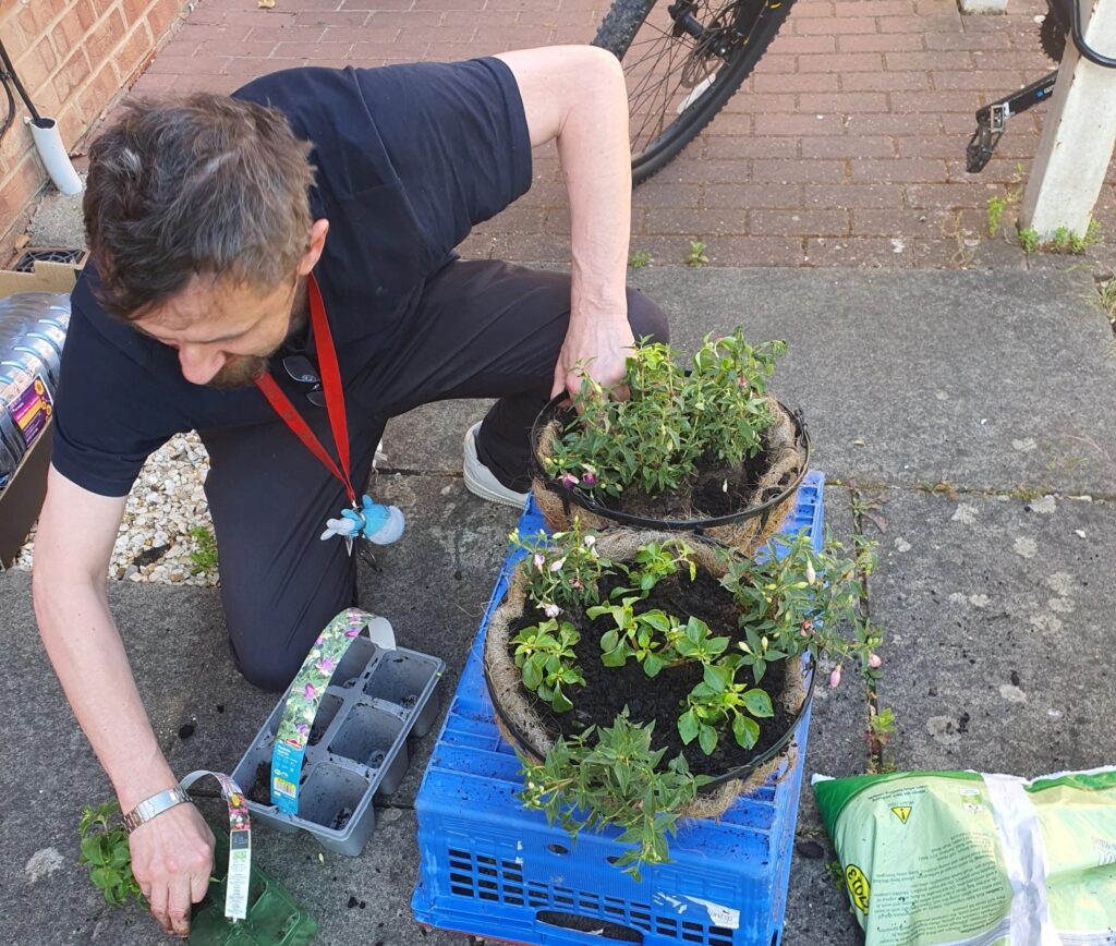Green-fingered clients and staff at Dene Court have embarked on a gardening project to bring some floral magic to their site.